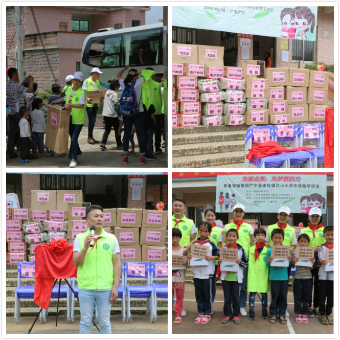 2018年5月12日,多次从事公益爱心活动的香港安植集团,来到了广宁县赤坑镇花山小学开展爱心助学公益活动,为学校捐赠了图书馆、学习用品、桌椅、电脑等,支持贫困山区教育,帮助山区学校提升教学质量和水平,拓宽孩子们的知识和视野。