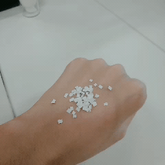 我们用纸屑做了试验,纸屑越少说明越不油腻。