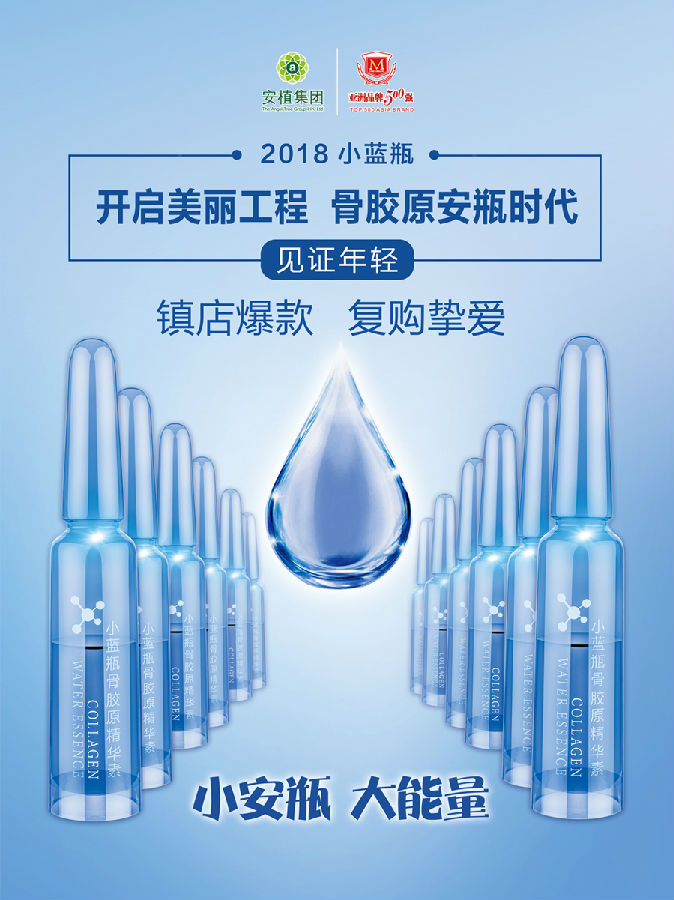 在此次中国(广州)美博会,安植集团将携带其倾力打造的镇店爆品"小蓝瓶"将惊艳亮相,开启骨胶原护肤安瓶时代,丰富的小分子骨胶原精华,让你的熬夜肌立变弹力肌,让东方之美闪耀世界。小安瓶,大能量。安植集团将镇店爆品与推广模式的精准策略,以品牌创新来引领市场潮流,以牌运营来铸就核心优势,帮助每一位合作伙伴持续突破终端营销的奇迹。
