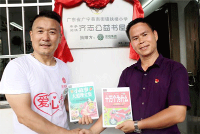 为关注农村留守儿童,助力贫困山区教育的发展。2019年7月6日,安植集团总经理赵荣强再次携手广州市越秀区齐志社会工作服务中心,赴广宁共同举办“牵手阅读——改善山区儿童阅读条件”为扶楼小学精准扶贫爱心公益助学活动。并在广宁县民政局谢学明副局长、广宁县中心小学欧杰文校长、广宁县扶楼小学潘光彬校长、安植集团赵荣强总经理的共同见证下,安植集团捐助的第33间“齐志公益书屋”在广宁扶楼小学正式揭牌。
