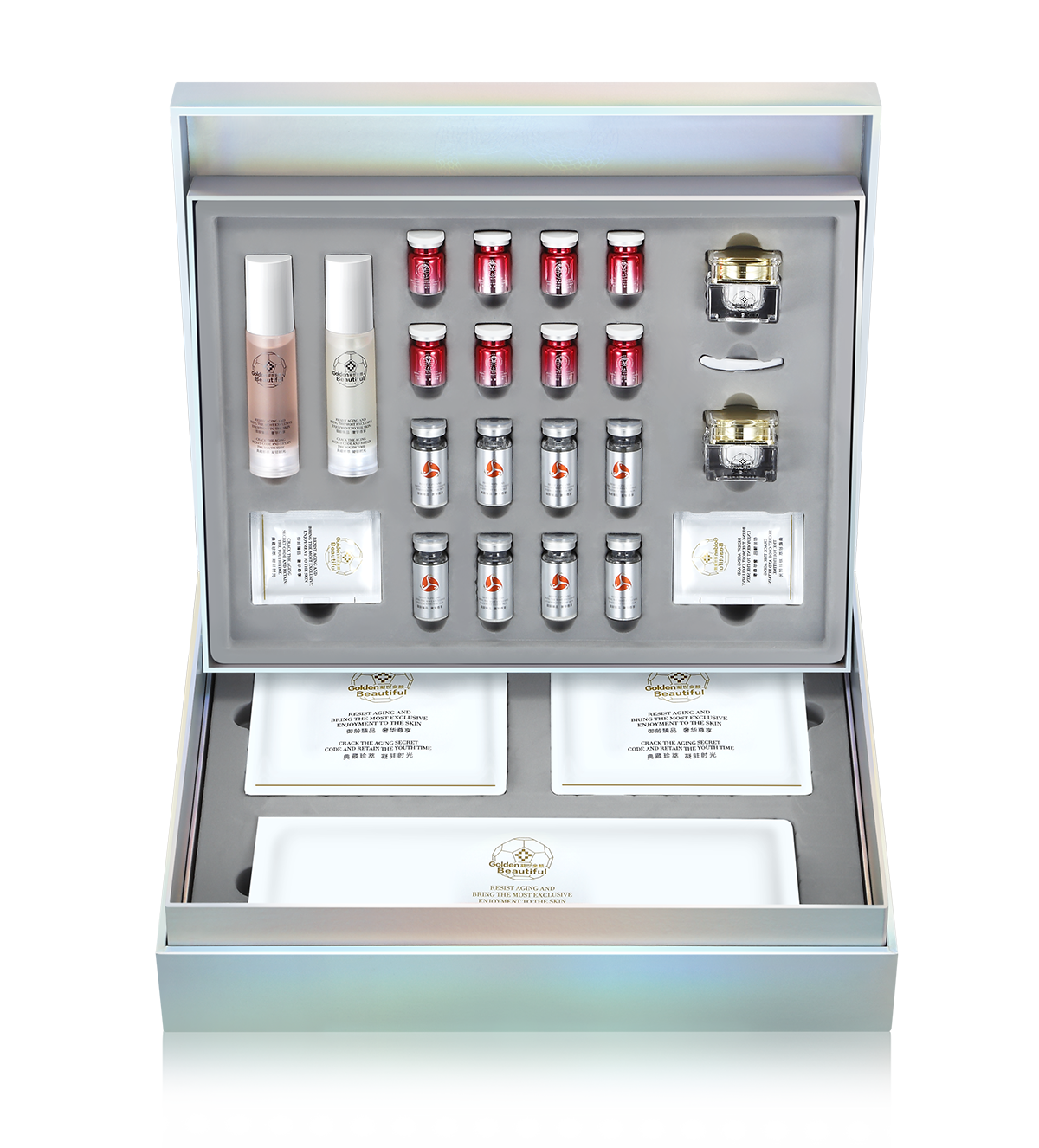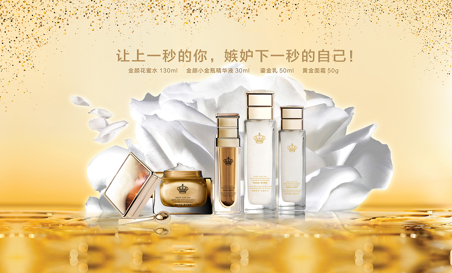 金颜家居系列蕴含多项奢华核心成分,玫瑰干细胞修复细胞,使肌肤润泽保湿;富勒烯让肌肤停止老化;黄金、银抗氧还原,抵御老化。金颜家居系列不仅质地丰满细滑,还自带香味、持久的留香,高效抗氧,提亮肤色,紧致毛孔,再现充满透明感和盈润触感的年轻美肌。