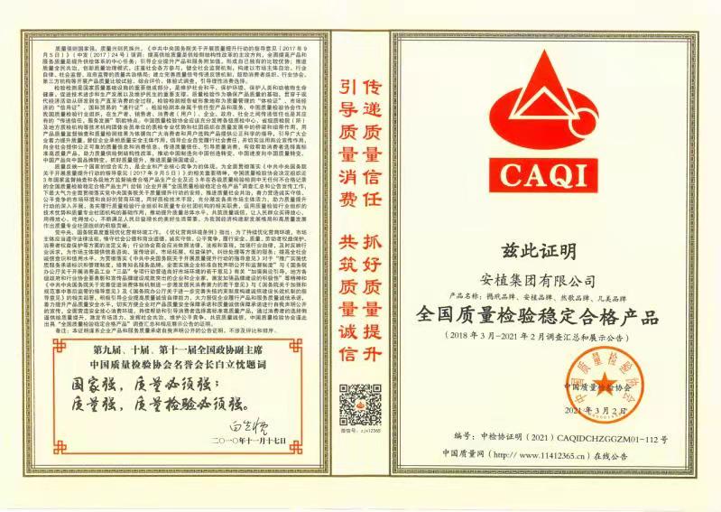 中国质量检验协会是全国质量检验机构,及质量检验工作者和全国质量监督工作者组织的质量检验行业组织、质量专业社团机构,由国家市场监督管理总局监管,是目前最权威的产品质量检验机构,安植的获奖是安植人精益求精质量追求的工作成果。