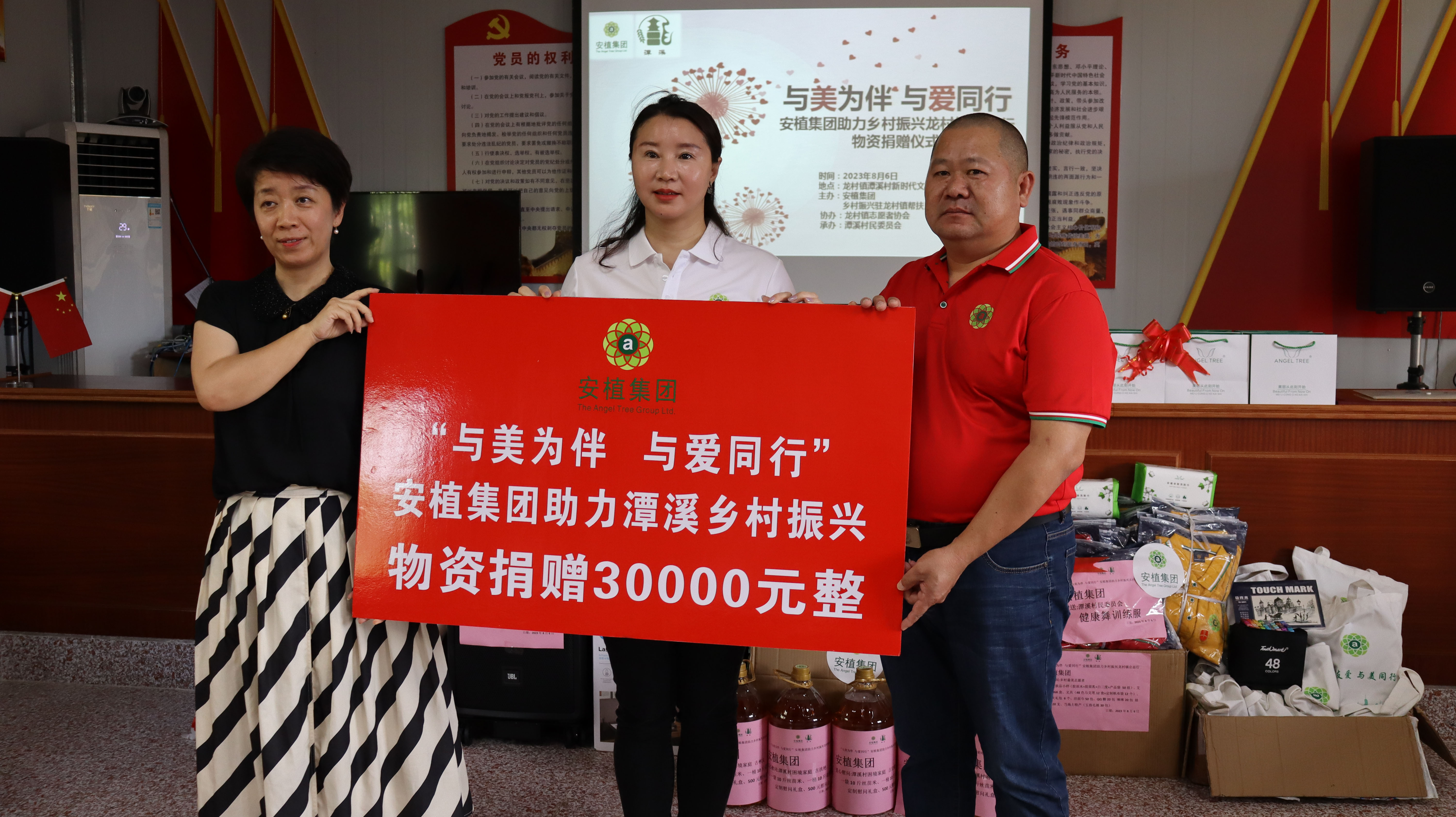 本次活动是由潭溪村民委员会承办,龙村镇志愿者协会协办,还特邀省文艺志愿者协会青年文艺工作者共同参与。安植集团向潭溪村捐赠3万元用于帮助乡村的建设发展。此外,安植集团还对潭溪小学及村里的学生捐赠了两台惠普打印机和部分学习文具,为村里的孩子提供更好的上学条件;帮助潭溪村健康舞舞蹈队发展,向村委会捐赠了一台移动户外音响,以及60件健康舞训练服。