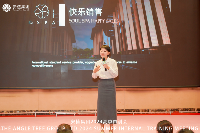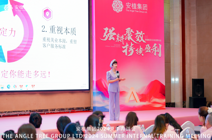 安植集团销售中心总经理陈丽女士,会上隆重发布安植集团全国会——《闪耀新生•破圈共融》以及四季百万沙龙会,体验式分享了《芭比派对•重返青春》,《国色芳华•荷你有约》,《莫奈花园•浪漫之约》和《花样女神•蝶变人生》为各市场人员激活锁定终端客户,实现业绩增长拓宽了营销渠道,开启了新模式。