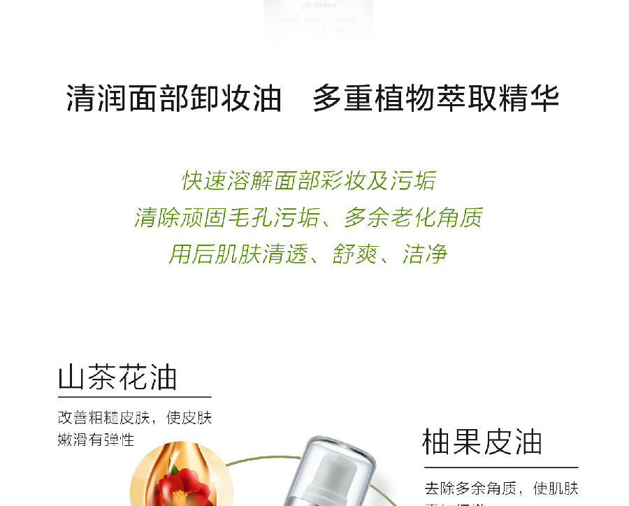 • 成分:天然非离子界面活性剂、山茶花油、柚果皮油、角鲨烷、绿茶提取物、薰衣草油