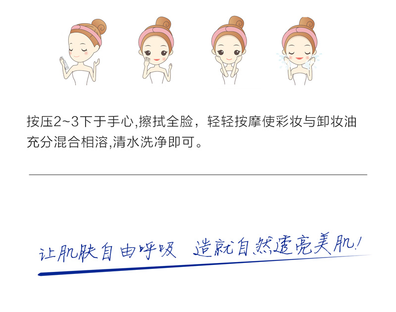 • 用法:按压2-3下于棉片,擦拭全脸并轻轻打圈,使之与彩妆充分 混合、相溶,再以清水洗净。