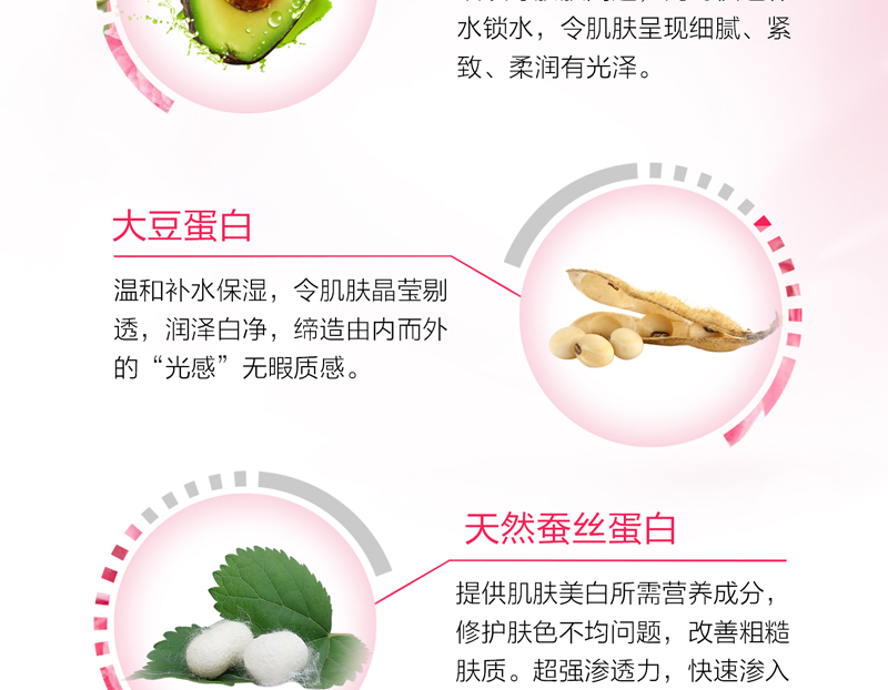 • 成分:免疫球蛋白、大豆蛋白、胶原蛋白、天然蚕丝蛋白、弹力蛋白