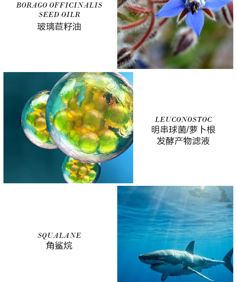 • 成分:富勒烯、玻璃苣籽油、明串球菌/萝卜根发酵产物
