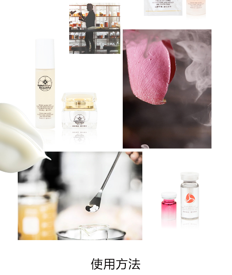 • 功效:帮助青春细胞再生和种植;增加胶原蛋白和纤维蛋白的合成,增厚真皮层,增加弹性;促进皮肤的新生和分裂,使新陈代谢周期恢复最初,让肌肤有弹性;减少皱纹,提升面部轮廓。